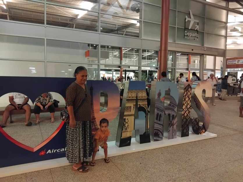 Pour l’occasion, l’aéroport de La Tontouta s’est mis aux couleurs de Paris. Photo Anthony TejeroLa délégation officielle qui suit ce vol inaugural est notamment composée de plusieurs élus : les membres du gouvernement Gilbert Tyuienon (en charge du transport) et Michaël Forrest (par ailleurs président de Nouvelle-Calédonie tourisme), les membres du Congrès Vaimu’a Muliva (membre d’administration d’Aircalin) et Omayra Naisseline.