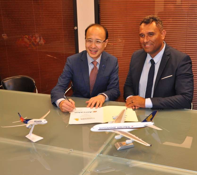 C’est une étape majeure dans le partenariat entre Aircalin et Singapore Airlines. Mardi 1er juillet, les deux compagnies ont signé un accord de partage de codes sur la ligne Nouméa-Singapour-Paris. Cette collaboration commerciale permettra aux deux compagnies de vendre les billets de tous les vols qu’elles opèrent chacune sur cette ligne. Aircalin pourra par exemple commercialiser des vols entre Singapour et Paris opérés par Singapore Airlines.