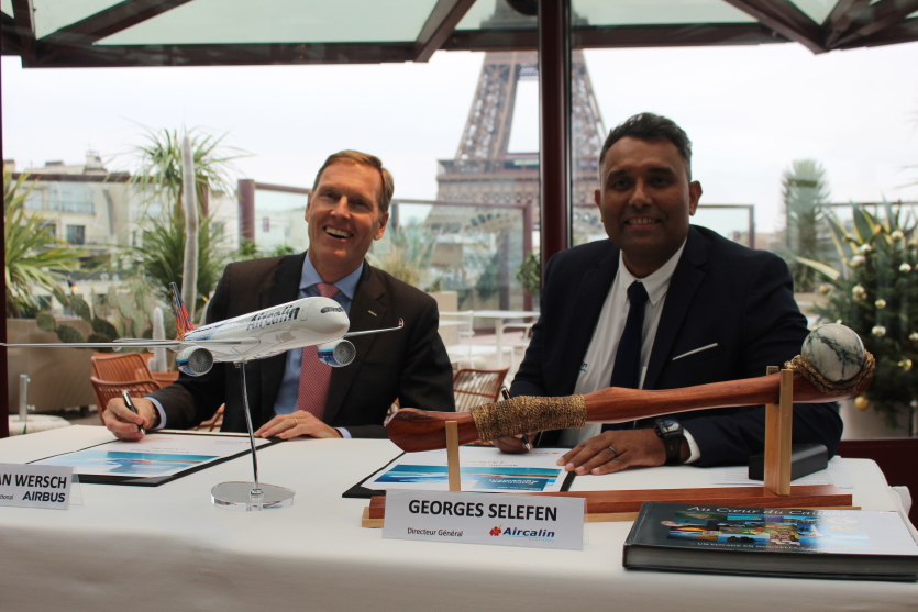 C’est lors du vol inaugural Nouméa-Paris via Bangkok, que son directeur, Georges Selefen, a annoncé l’intention d’Aircalin d’acheter deux Airbus A350-A900 afin d’assurer cet extra-long courrier, le 12 décembre. La compagnie à l’hibiscus signait un contrat avec Airbus, expliquant que les deux appareils étaient mieux adaptés pour effectuer cette liaison que la flotte actuelle, composée d’A320neo et d’A330neo. Wounter Van Wersch, vice-président exécutif à l’international d’Airbus, vantait la légèreté et la robustesse des A350-900, réduisant les frais de maintenance. Autres avantages : passer de 291 à 325 places et de deux à quatre rotations hebdomadaires. "Un choix mûrement réfléchi, déclarait alors Georges Selefen aux Nouvelles calédoniennes. Il s’agit du meilleur avion pour ce type de trajet. Pour ouvrir une destination comme Paris, il faut être outillé."