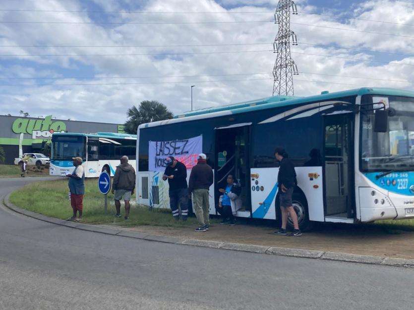 Huit bus ont pris position sur le rond-point d’Autopoint, à deux pas du dépôt de l’entreprise, à Ducos. Les membres de Karuïa dénoncent le refus du SMTU de les autoriser à reprendre la circulation sur le réseau, trois mois après les exactions du 13 mai, et alors que la circulation est, selon eux, possible et sécurisée sur une grande partie du réseau.