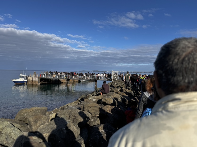 - A.T. | Crée le 16.09.2024 à 08h56 | Mis à jour le 16.09.2024 à 11h39ImprimerTous les matins, la file d'attente pour embarquer dans les navettes maritimes du Vallon-Dore en direction de Nouméa s'étire sur plusieurs dizaines de mètres. Photo DREn raison de "mauvaises conditions météo", les navettes maritimes de la province Sud devaient initialement s’arrêter ce lundi 16 septembre, à 11 heures. Finalement, le service restera actif toute la journée.