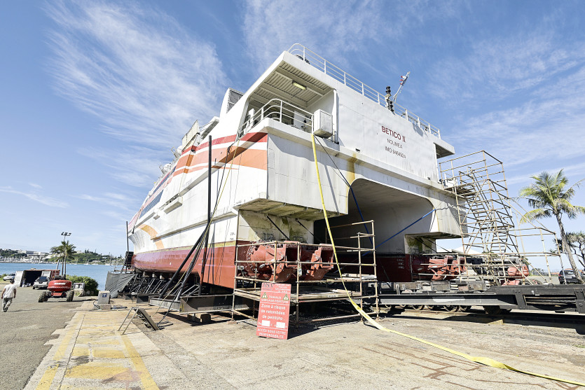 - Le navire qui transporte régulièrement les Calédoniens de Nouméa vers les îles n'a pas quitté le Caillou pour sa révision annuelle. Pour la première fois depuis sa mise en service en 2009, le carénage du Betico 2 s'effectue à Nouville jusqu'à la fin de la semaine. La compagnie Sudîles compte bien faire de cette grande première une habitude.La cale de halage de Nouville n'était pas dimensionnée à accueillir le mastodonte orange et blanc. La compagnie Sudîles, qui exploite le Betico 2, prépare le projet depuis deux ans. Le 22 juin, le catamaran de 350 tonnes et de 54 mètres de long a finalement pu être sorti de l'eau au portIl vous reste 97% de l'article à découvrir.Cet article est réservé aux abonnés.