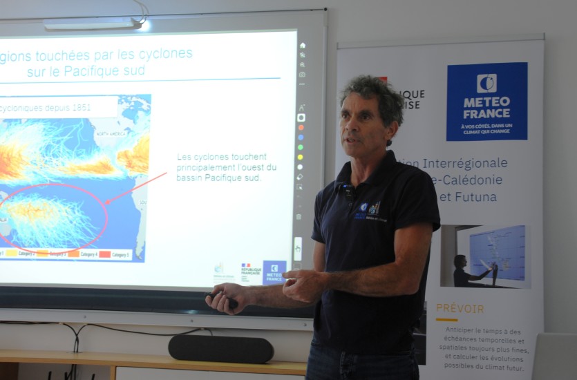 Thomas Abinun, climatologue chez Météo-France, a présenté les principales caractéristiques de la saison cyclonique 2025-2026 lundi 27 octobre, dans les locaux de la structure. Photo A.-C.P.Une activité centrée sur le sud-ouest du Pacifique