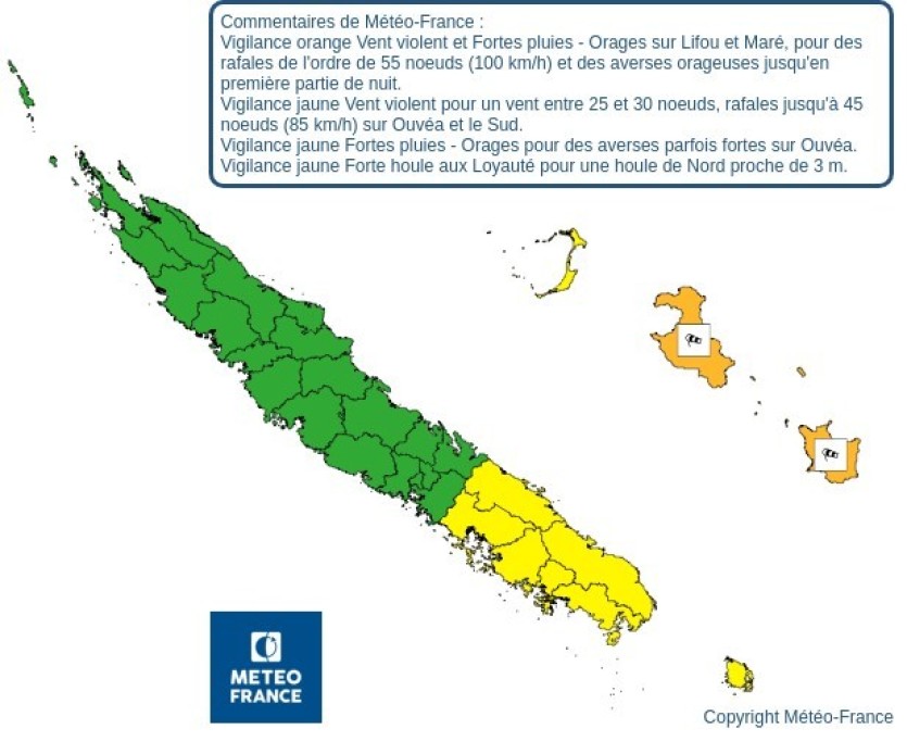 C’est pour cette raison que Drehu et Nengone sont encore placées en vigilance orange aux vents violents et fortes pluies. Un niveau d’alerte jaune en ce qui concerne Ouvéa. La houle, également importante, ne permet aucune sortie en mer. Sans oublier la pointe Sud (Boulouparis, Dumbéa, Mont-Dore, Nouméa, Païta, Thio, Yaté) ainsi que l’île des Pins en alerte jaune aux vents violents.