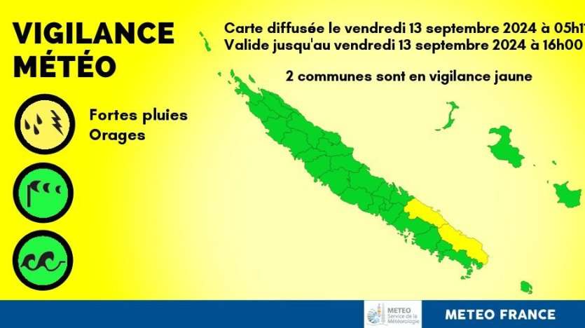 Alors que le temps sec et venteux s'installe dans le pays depuis le mois d'août, Thio et Yaté devraient recevoir des précipitations significatives, ce vendredi 13 septembre. Météo France NC émet une vigilance jaune aux fortes pluies et aux orages.