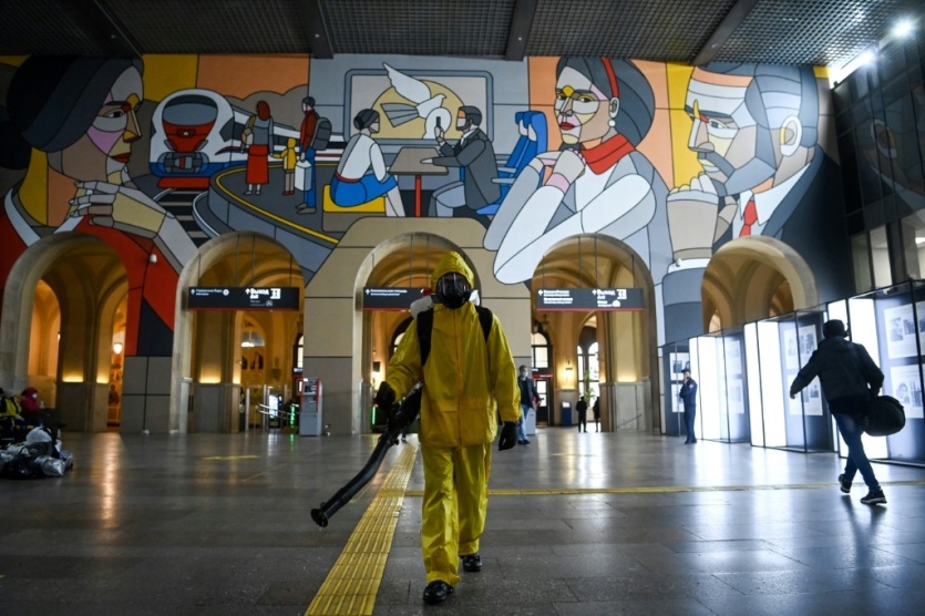 - | Crée le 19.10.2021 à 18h16 | Mis à jour le 20.10.2021 à 03h16ImprimerDésinfection à la gare Leningradsky de Moscou, le 19 octobre 2021 Kirill KUDRYAVTSEV [AFP]La ville de Moscou a annoncé mardi des restrictions sanitaires, les premières depuis l'été, face à l'envolée des cas et des décès du Covid-19, le Kremlin réfléchissant lui des mesures d'ampleur nationale pour endiguer la propagation du virus.