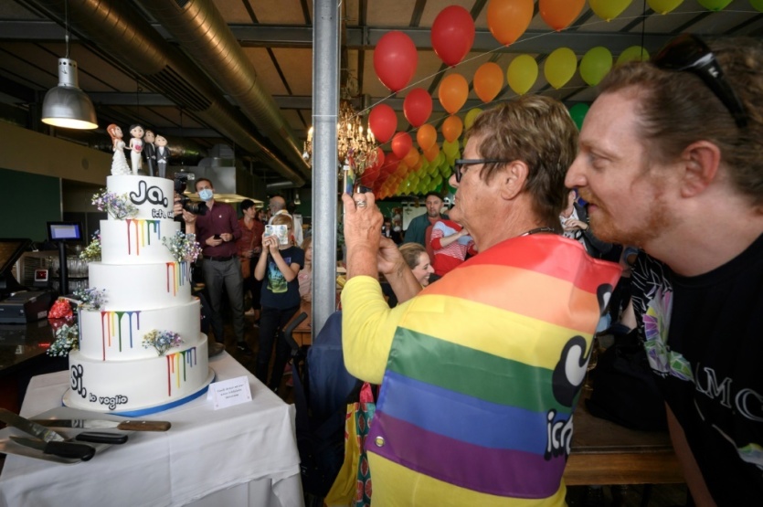 "C'est un jour historique". La formule revenait sur toutes les lèvres au QG des partisans du oui, dans un restaurant de Berne, pavoisé de drapeaux arc-en-ciel et où Mona Gamie, une Drag queen ceinte d'un fourreau bleu scintillant, entonnait "L'hymne à l'amour" d'Edith Piaf pour marquer l'occasion.
