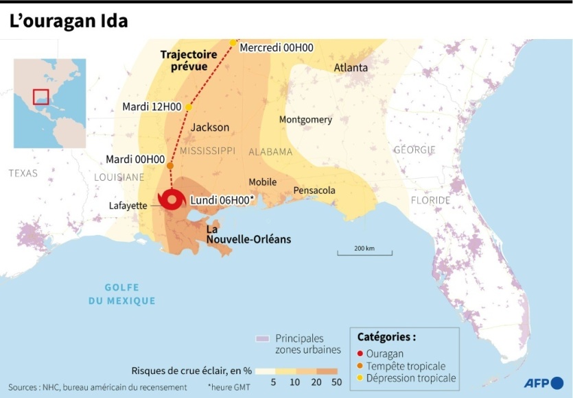 Le président Joe Biden avait décrit Ida comme "un cyclone potentiellement mortel" et déclaré la Louisiane en état de catastrophe majeure, lui permettant d'accéder à l'aide fédérale. Dimanche, il s'est rendu au siège de l'agence américaine de gestion de crise (FEMA), priant la population de prendre la menace au sérieux.
