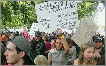 - Australie. Manifestations anti-Abbott à travers le paysDimanche, des manifestations anti-Abbott ont été organisées dans toutes les grandes villes australiennes. Malgré la pluie, ils étaient plus de 10 000 à Sydney, d’après la police. A Hobart, capitale de la Tasmanie, une manifestante arborait un panneau portant le slogan : «Il vous reste 68% de l'article à découvrir.Cet article est réservé aux abonnés.