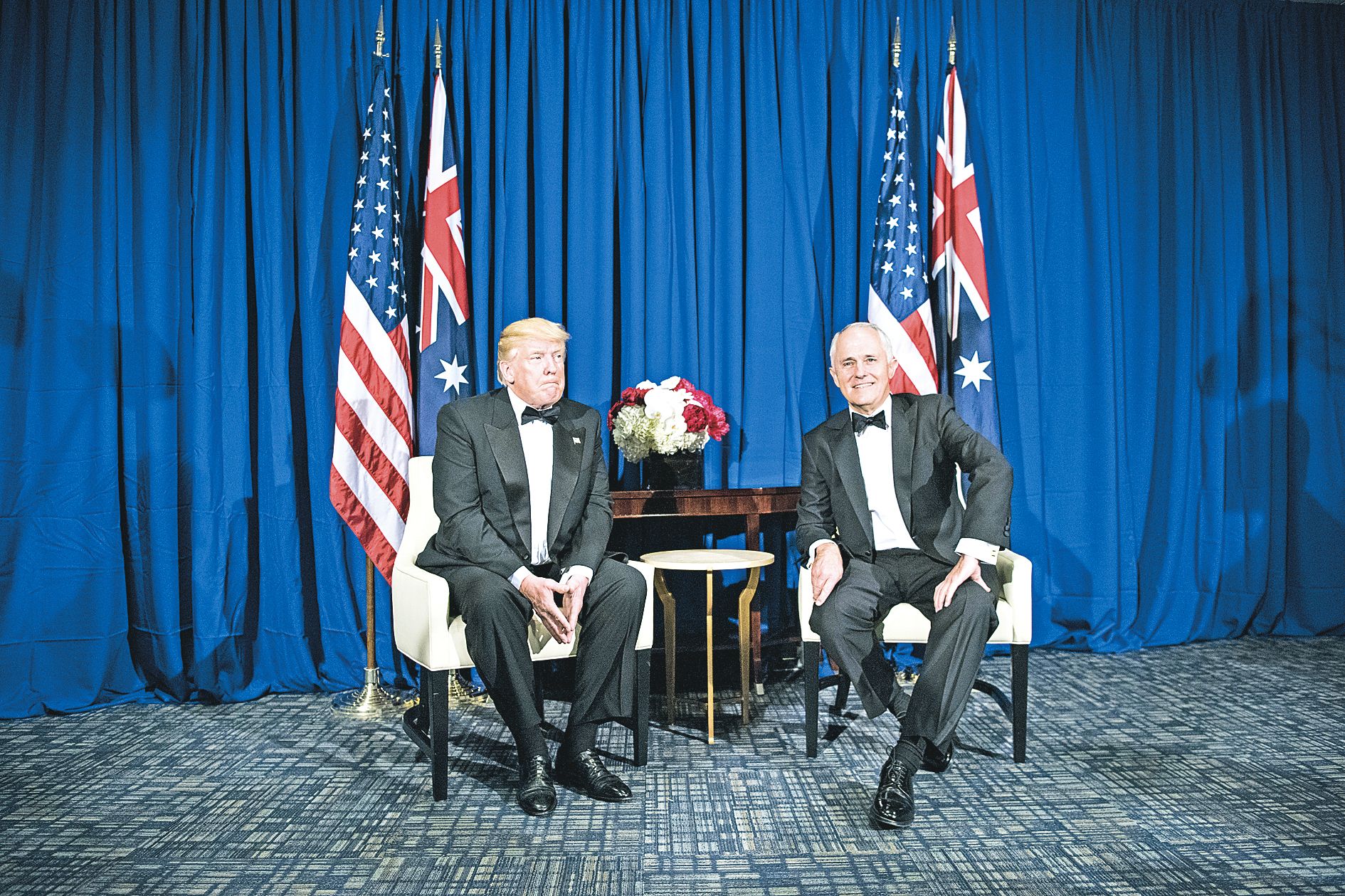 - Australie. Le Premier ministre a rencontré Donald Trump à New York. L’occasion de tourner la page sur l’affaire du coup de téléphone.Donald Trump a scellé sa réconciliation avec le Premier ministre australien Malcolm Turnbull en réaffirmant l’alliance américano-australienne jeudi à New York. Les deux hommes se sont retrouvés pour un dîner sur l’USS Intrepid, un porte-avions de la Seconde guerre mondiale transforméIl vous reste 84% de l'article à découvrir.Cet article est réservé aux abonnés.
