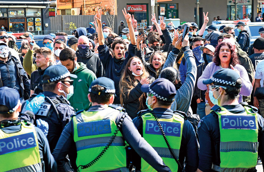- AUSTRALIE. La police australienne a arrêté dimanche à Melbourne plus de 70 personnes qui avaient enfreint les ordres de demeurer chez elles pour manifester contre les mesures de restriction en vigueur pour juguler l’épidémie de coronavirus. Quelque 250 personnes ont pris part à cetteIl vous reste 86% de l'article à découvrir.Cet article est réservé aux abonnés.