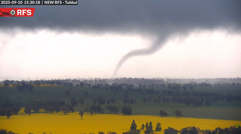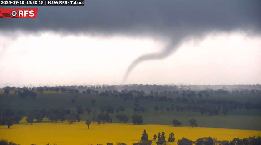 La tornade spectaculaire a été filmée en milieu d'après-midi par une caméra de surveillance dédiée aux incendies dominant une étendue de campagne frappée par un orage. La caméra installée près de Young, une ville dans la région de Hilltops en Nouvelle-Galles du Sud, pour surveiller les feux de brousse, s'est déclenchée automatiquement et a capturé des images de la tornade dans un ciel d'orage.