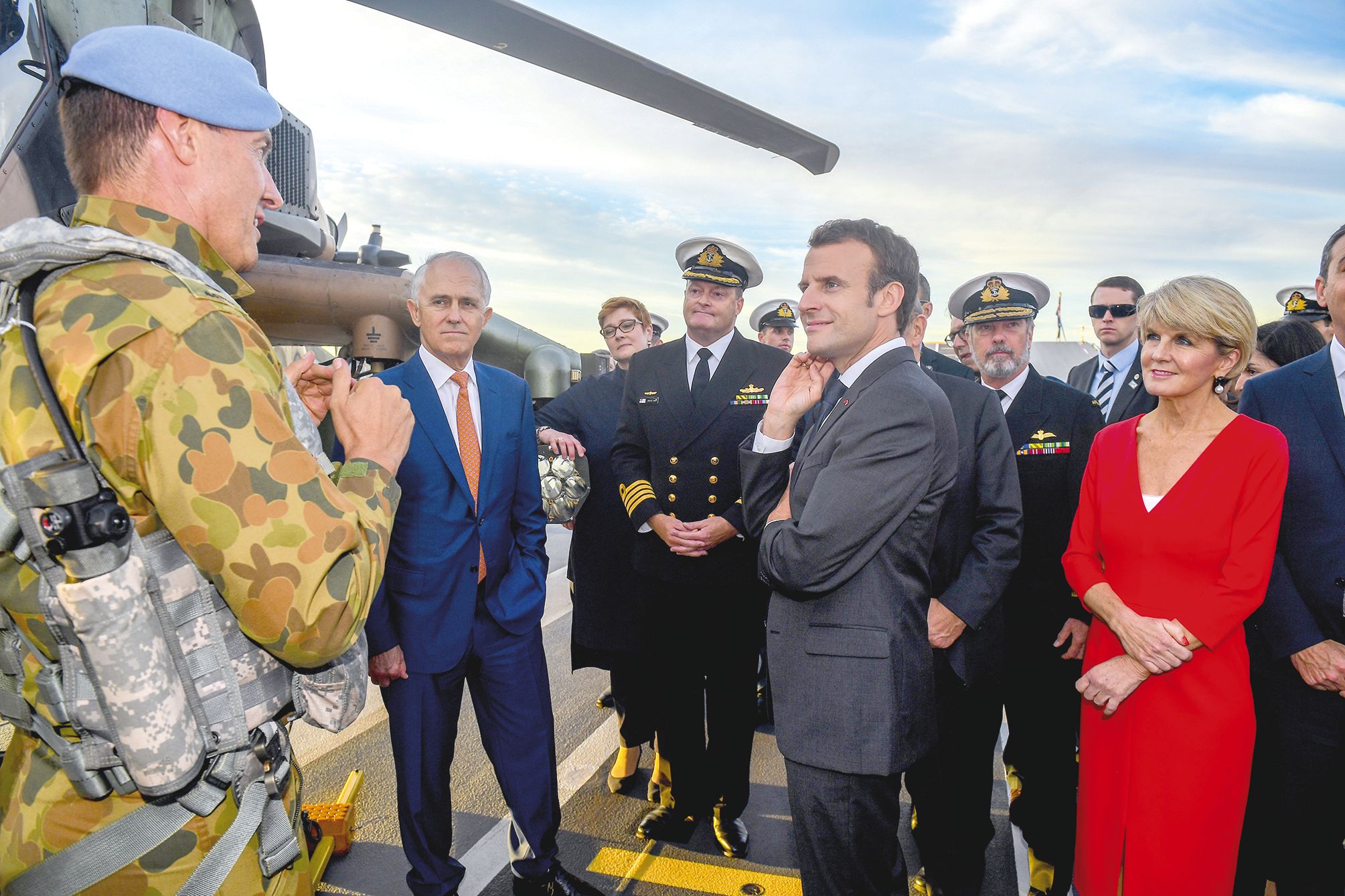 - AFP | Crée le 04.05.2018 à 05h24 | Mis à jour le 04.05.2018 à 07h20ImprimerUne visite de la base navale de Garden Island. Armement et cybersécurité étaient au menu. Photo AFPAUSTRALIE. Le président français Emmanuel Macron et le Premier ministre australien Malcolm Turnbull ont signé plusieurs accords, pour construire un « partenariat plus approfondi ».