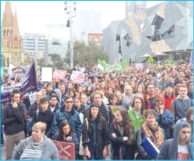 - Australie. Protestations contre les coupes budgétairesMercredi, le Premier ministre a fait face à une vague de manifestations dans les grandes villes du pays contre les coupes budgétaires annoncées il y a dix jours. Des milliers d’étudiants et de retraités ont manifesté à Sydney, à Brisbane, à Hobart, et à Melbourne (photo), où unIl vous reste 65% de l'article à découvrir.Cet article est réservé aux abonnés.