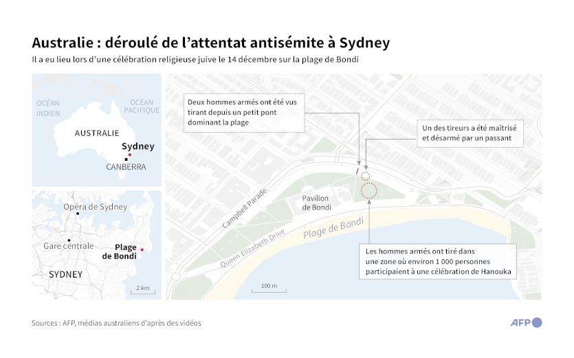 Naveed Akram et son père Sajid Akram, tué par la police lors de l'attaque, sont accusés d'avoir ouvert le feu pendant une dizaine de minutes le dimanche 14 décembre sur une foule rassemblée sur la plage de Bondi, à Sydney, pour célébrer la fête juive de Hanouka, faisant 15 morts.