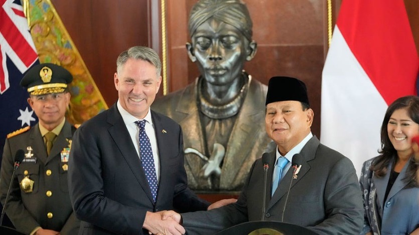 - AFP | Crée le 20.08.2024 à 15h55 | Mis à jour le 20.08.2024 à 16h00ImprimerLe ministre australien de la Défense Richard Marles serre la main de l’actuel ministre de la Défense et futur président indonésien, Prabowo Subianto. Photo DRL’Australie et l’Indonésie ont dévoilé mardi un nouvel accord de défense, s’engageant à une coopération plus étroite, lors de la visite à Canberra de l’actuel ministre indonésien de la Défense et futur président, Prabowo Subianto.