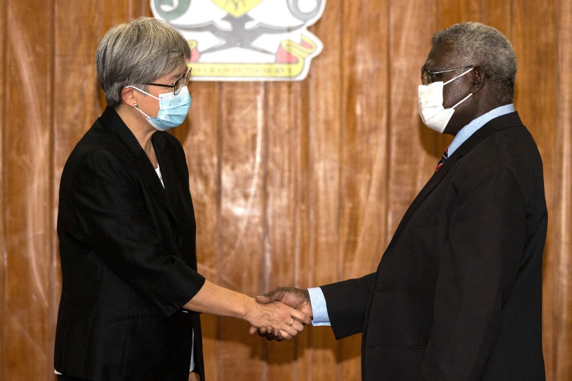 - La ministre australienne des Affaires étrangères était aux Salomon vendredi. Le but de sa visite : s'assurer que Honiara reste un partenaire.Les pays du Pacifique Sud n'ont besoin d'aucune aide extérieure pour se protéger, a assuré la cheffe de la diplomatie australienne en visite vendredi aux îles Salomon, en réaction à l'offensive de charme de la Chine dans la région. "L'Australie continue de penser que la famille du PacifiqueIl vous reste 91% de l'article à découvrir.Cet article est réservé aux abonnés.