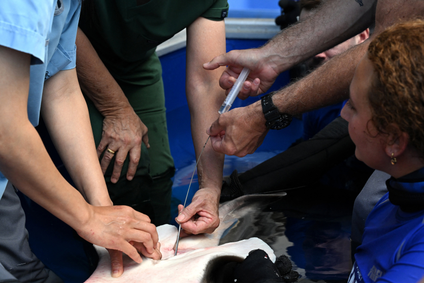 Le docteur Paolo Martelli, vétérinaire en chef d’Ocean Park Hong Kong, et son équipe procèdent à une insémination artificielle à l’Aquarium de Sydney à Sydney. Photo Saeed KHAN / AFPCette procédure s’inscrit dans le cadre d’un vaste programme mondial d’élevage de requins léopards, connu sous le nom de StAR, auquel participent plus de 60 groupes de protection de la nature, aquariums et agences gouvernementales. À l’échelle mondiale, environ 37 % des espèces de requins et de raies océaniques, y compris le requin léopard, sont désormais répertoriées comme étant en danger ou en danger critique d’extinction par l’Union internationale pour la conservation de la nature (UICN), une base de données mondiale sur les espèces menacées.