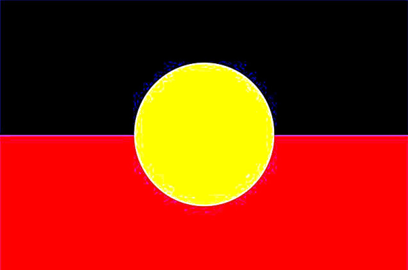 Le drapeau aborigène – une bande supérieure noire et une bande inférieure rouge, avec un disque jaune au centre – est l’un des drapeaux officiels de l’Australie depuis 1995.