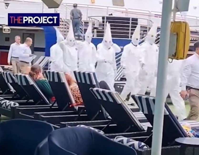 Passengers on a P & O cruise were left shocked when members of the ship crew seemingly dressed up in KKK attire.