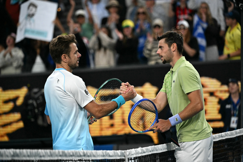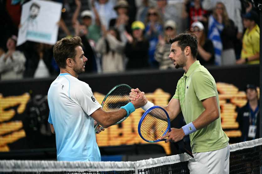 - AFP | Crée le 23.01.2026 à 07h27 | Mis à jour le 23.01.2026 à 07h27ImprimerLe Suisse Stan Wawrinka (à gauche) salue le Français Arthur Gea après avoir remporté son match de simple masculin lors de la cinquième journée du tournoi de tennis de l’Open d’Australie à Melbourne, le 22 janvier 2026. AFP - Paul CrockÀ 40 ans et pour son dernier Open d’Australie, Stan Wawrinka a arraché sa qualification pour le troisième tour au terme d’un combat de 4h33 face au jeune Français Arthur Gea, récent vainqueur du BNC Tennis open de Nouméa, dans un match irrespirable conclu au super tie-break.