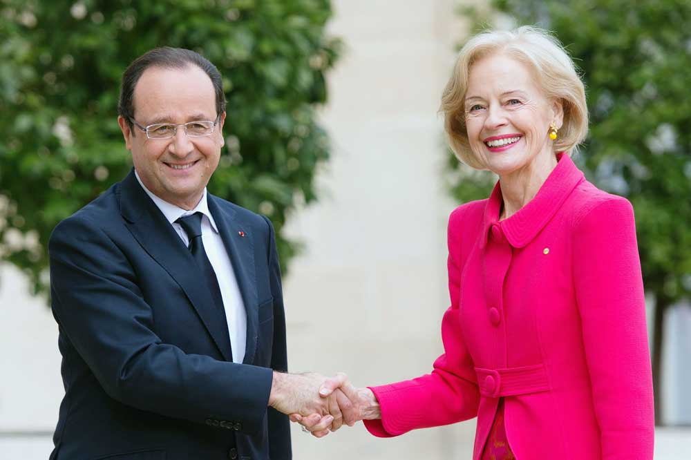 - Diplomatie.?François Hollande reçoit la gouverneure générale australienneLe président français François Hollande s’est entretenu lundi avec Mme Quentin Bryce, gouverneure générale australienne, lors d’une visite de cette dernière en Europe. A l’issue de ces entretiens à l’Élysée, la présidence a souligné « la convergence deIl vous reste 73% de l'article à découvrir.Cet article est réservé aux abonnés.