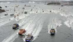 - Australie. Dimanche, a été célébrée la fête nationaleDimanche, l'Australie célébrait sa fête nationale en commémoration de l'arrivée dans la baie de Sydney de la première flotte britannique, emmenée par le capitaine Arthur Phillip. C'était il y a 226 ans, le 26 janvier 1788. Comme chaque année, de nombreux événements étaient organisés à Sydney.A toute vitesse (Photo 1)En fin de matinée, la traditionnelle course de ferries s’est déroulée entre Circular Quay, Shark Island et Harbour Bridge. Depuis les rives de la baie, des milliers de spectateurs ont assisté à ce Ferrython. Un ciel étincelant (Photo 2)Pour clôturer cetteIl vous reste 74% de l'article à découvrir.Cet article est réservé aux abonnés.