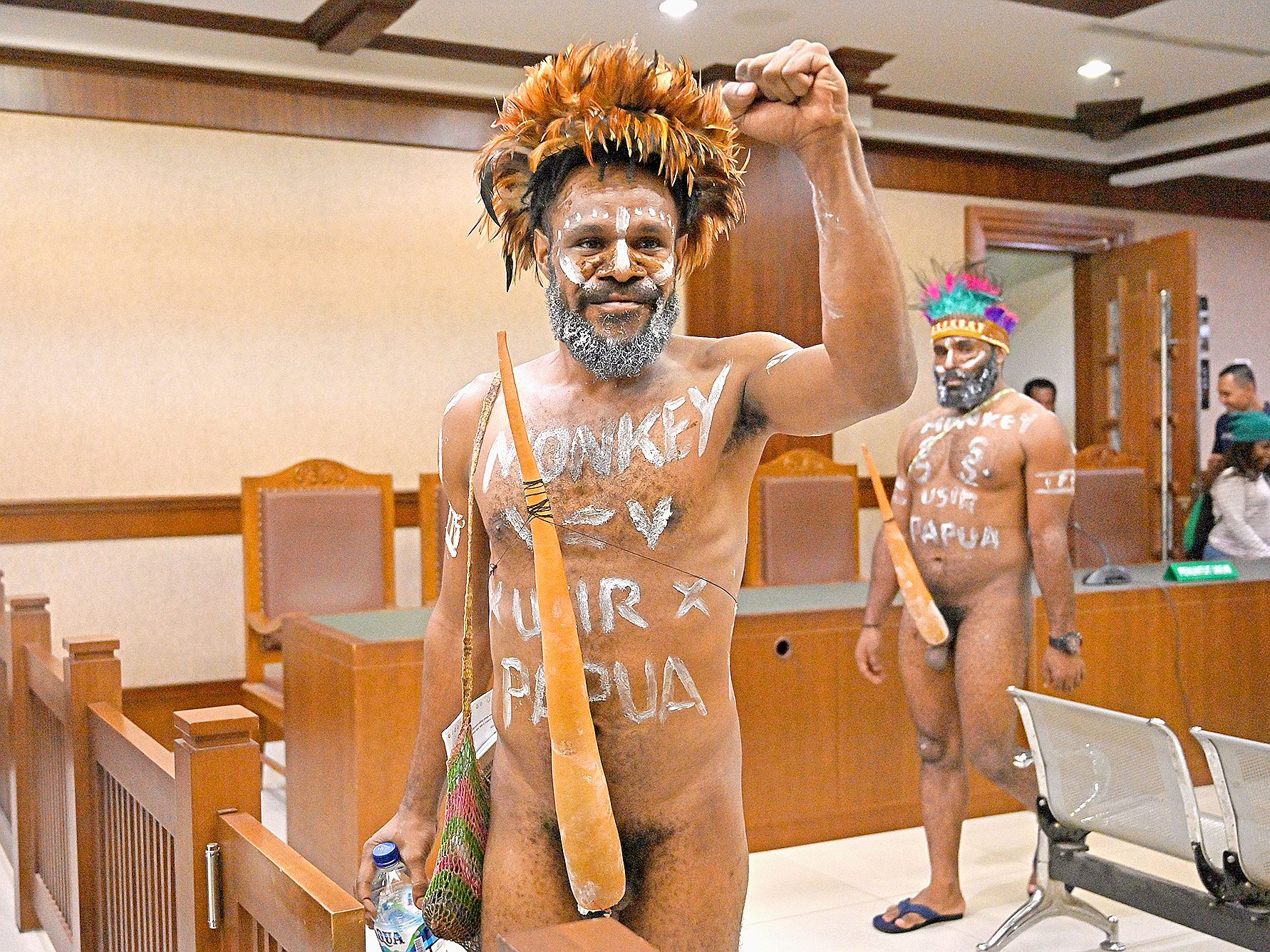 - INDONÉSIE. Deux activistes papous jugés lundi à Jakarta ont été forcés par la cour de retirer leur étui pénien traditionnel, une décision qu’ils ont qualifiée de « raciste ». Le tribunal a refusé de tenir audience tant que les deux hommes, Dano Anes Tabuni et Ambrosius Mulait, quiIl vous reste 72% de l'article à découvrir.Cet article est réservé aux abonnés.