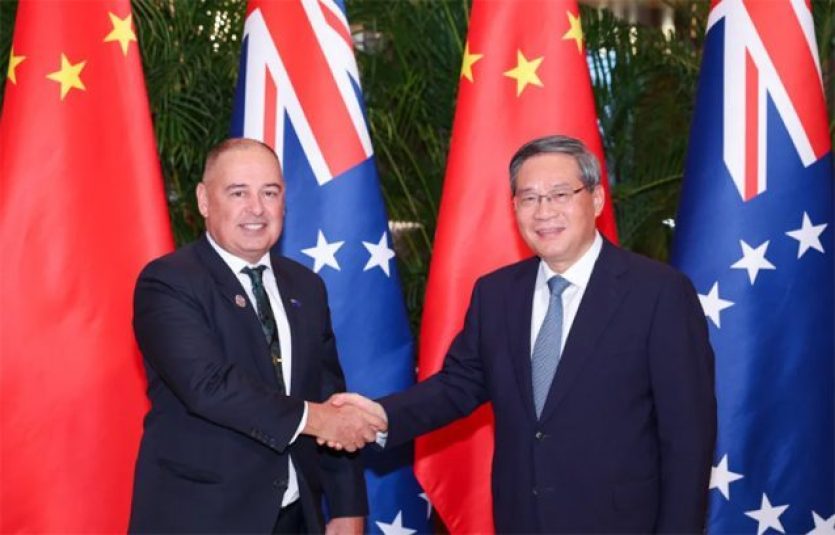 - A.F.P. | Crée le 18.02.2025 à 17h00 | Mis à jour le 18.02.2025 à 17h00ImprimerMark Brown et le Premier ministre chinois Li Qiang. Capture d'écran Radio 1 TahitiLe gouvernement des îles Cook a défendu, ce mardi 18 février, un nouveau pacte stratégique avec la Chine, qui cherche à étendre son influence dans le Pacifique. Cet état insulaire explique vouloir réduire sa dépendance à son "grand frère" néo-zélandais.
