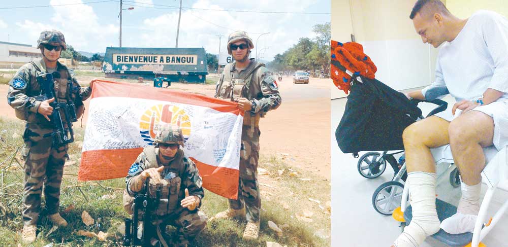 - Polynésie française. Deux Tahitiens blessés en CentrafriqueTevai Teamo, 29 ans est l'un des deux soldats tahitiens blessés le 20 août à Bangui. Hospitalisé dans le Val-de-Marne, il se remet doucement de ses blessures en attendant de rentrer en Alsace, auprès de sa femme et de son bébé, avant de repartir en mission.Les heurts ont été très violents les 19 et 20 août, à Bangui, entre les militaires français et des groupes armés. Des grenades ont été lancées. Qu’en est-il de vos blessures ?Tevai Teamo : Une grenade a tapé au niveau de ma jambe droite. Des éclats ont frappé toute ma jambe, duIl vous reste 92% de l'article à découvrir.Cet article est réservé aux abonnés.