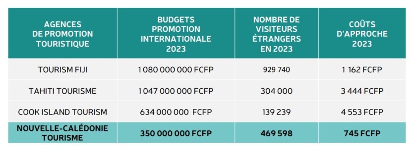 Du côté des budgets alloués à la promotion internationale du tourisme, la différence est également de taille selon Nouvelle-Calédonie tourisme (NCT), qui met en avant une enveloppe globale de plus d’un milliard de francs au Fenua, contre à peine 350 millions de francs sur le Caillou, en 2023.