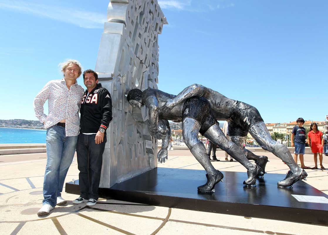 - Nouvelle-ZélandeUne sculpture monumentale, représentant deux rugbymen lors d’une mêlée luttant contre un mur de mots, a été inaugurée, lundi, en présence de l’artiste, Stéphane Cipre (à gauche sur la photo). Le sculpteur niçois, en collaboration avec son ami Jeff Tordo (à droite), ancienIl vous reste 79% de l'article à découvrir.Cet article est réservé aux abonnés.