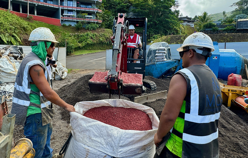 Réduire le coût des matériaux de construction, limiter le prélèvement d’agrégats dans les rivières et les carrières locales, tout en recyclant des déchets plastiques qui sont habituellement exportés pour traitement : c’est ce qu’ont initié le promoteur Demeures de Tahiti et sa société de construction MCP en mettant en œuvre un nouveau type de béton.