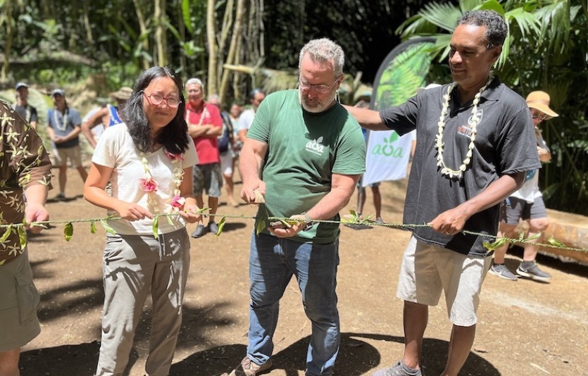 Représentants des autorités, cadres d’entreprises, élèves des MFR, une petite trentaine d’employés de la société Aoa Polynesian Forests… ils étaient nombreux à assister à l’inauguration de la première forêt éducative polynésienne en cette Journée internationale des forêts. Présentée il y a tout juste un an, la nouvelle société Aoa Polynesian Forests a la vaste ambition de régénérer une forêt native polynésienne sur 250 hectares, au cœur de la vallée de Mo’aroa sur la commune de Teva i Uta, à Tahiti. Les premiers sentiers tracés pour accueillir du public ont été présentés ce jeudi (vendredi en Calédonie). Des rondins de bois délimitent donc le passage avec, sur les platebandes, des espèces indigènes ou endémiques, tout juste replantées, avec leur petit panneau explicatif. La promenade est également enrichie de grandes pancartes sur la biodiversité, les différents types de forêts polynésiennes, les espèces d’oiseaux que l’on peut observer dans la vallée…
