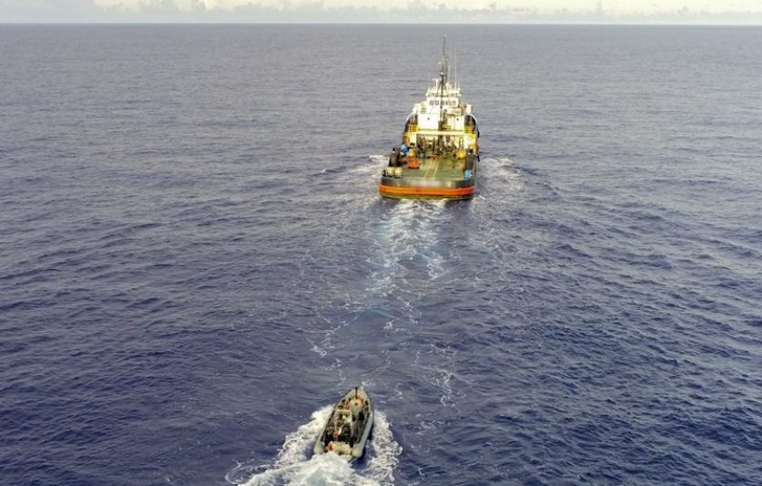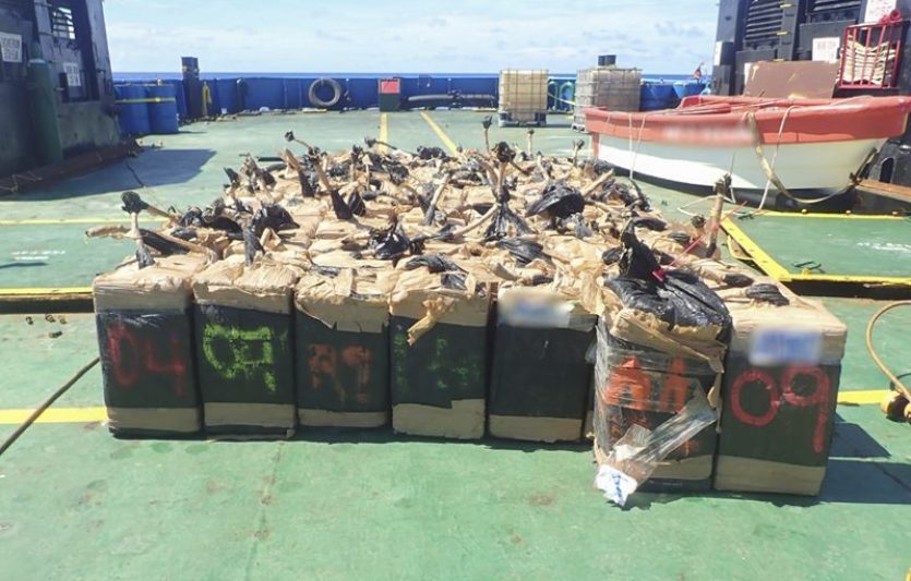 Si la cargaison de drogue a été détruite, le navire et son équipage ont pu reprendre leur navigation. Photo HC PFUne opération similaire avait eu lieu le 16 janvier, pour une saisie de 4,87 tonnes en provenance "d’Amérique centrale", puis une autre le 29 janvier, avec 4,2 tonnes détruites, des interceptions records. S’ajoutent les 473 kg de cocaïne saisis par la douane au port autonome de Papeete lors d’un contrôle de conteneur destiné à l’Australie début février. Ces saisies représentant une valeur marchande cumulée d’environ 2,4 milliards de dollars, soit 240 milliards de francs, d’après les autorités.