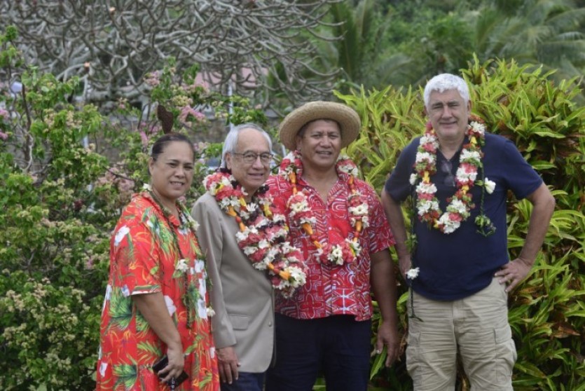 Witi Ihimaera (deuxième à gauche) avec Christian Robert (à droite) sur l’île de Rurutu Photo : Au Vent des ÎlesCette tournée a aussi été marquée par la présence de Larissa Behrendt, avec son merveilleux livre Britany, qui raconte le voyage d’une femme aborigène et de sa maman sur les lieux des grands auteurs anglais en Grande-Bretagne. La tournée avec ces deux auteurs a donné lieu à de très belles discussions entre Larissa, qui représentait le peuple le plus ancien sur la terre (les Aborigènes) et Witi qui parlait au nom du plus récent puisque la Nouvelle-Zélande a été conquise par les Polynésiens vers 1200 après JC.