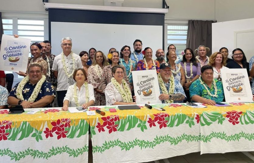 Lors de la signature à Mahina, aux côtés du maire récemment élu Damas Teuira, Moetai Brotherson a indiqué que le Pays pouvait soutenir les communes désireuses d’aller vers la gratuité de la cantine dans les établissements du primaire.