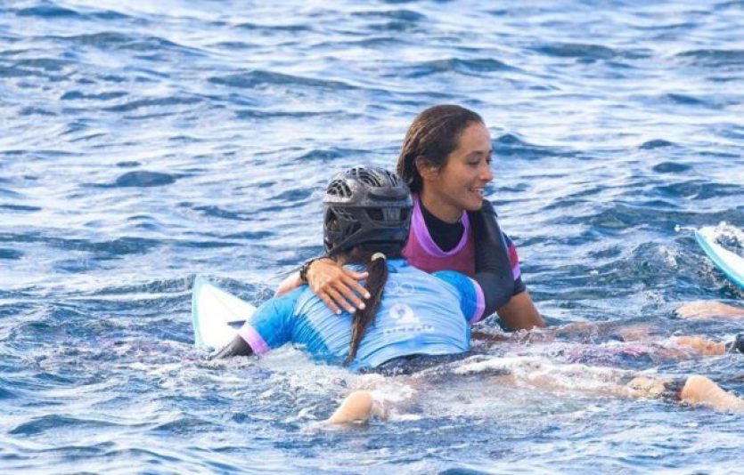 Compliqué pour tout le monde, y compris Johanne Defay. À la fin du heat, les deux coéquipières sous bannière tricolore s’enlacent. Vahine le sait : Johanne a une des plus belles carrières du surf français, et peut aller " au bout " pour ces JO. Johanne, elle n’a jamais douté du talent de sa jeune concurrente : " C’était l’athlète à abattre ici, la plus forte, elle l’a déjà montré. Avec mes coachs, on avait décidé de rester sur ce que je sais faire : les manœuvres d’abord et après gérer les tubes en fonction des séries. Vahine est aussi restée sur ce qu’elle sait faire, mais c’est de mon côté que ça a payé sur ces trente minutes, décrit-elle. Je sais que ça ne va pas forcément la réconforter, mais elle n’a pas besoin de médaille aujourd’hui pour nous montrer qu’elle est là patronne ici. C’est fantastique tout ce qu’elle a fait, tout le travail qu’elle a fourni. Je sais que c’est une énorme déception, mais ça va la rendre plus forte ".