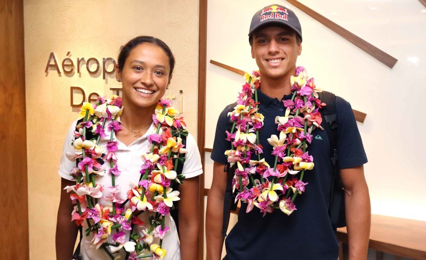 Vahine Fierro et Kauli Vaast après leur qualification pour les JO. Photo Polynésie"C’était mon petit garçon, mon protégé", explique "le boss" avec tendresse. Le petit garçon, qui dès ses 11 ans partait seul vivre un mois à Hawaï avec d’autres surfeurs, a désormais bien grandi : "il a une grande maturité : il sait surfer gros ou petit, faire des 'aerials', toutes les manœuvres, il est très stratégique", détaille son mentor.