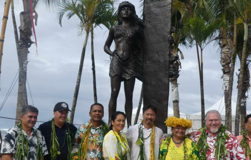 Il y avait foule, mercredi dernier au PK0. Sur le reef bien sûr, avec une houle des bons jours. Généreuse, mais non sans risque, pour preuve le wipeout de Arenui Parker, la passe de Hava’e a distribué les rouleaux à la pelle, au grand bonheur des meilleurs spécialistes locaux et de quelques internationaux venus se tester en free-surf ou s’entraîner avant les Jeux Olympiques. Du monde, il y en avait aussi sur terre, " au bout de la route ", où les élus de la commune, le président Moetai Brotherson, ses ministres Nahema Temarii et Ronny Teriipaia, quelques officiels, et plusieurs bénévoles en t-shirt orange ont assisté au dévoilement d’une statue en bronze signée Évrard Chaussoy, représentant la légendaire surfeuse Vēhiatua i te māta’i.