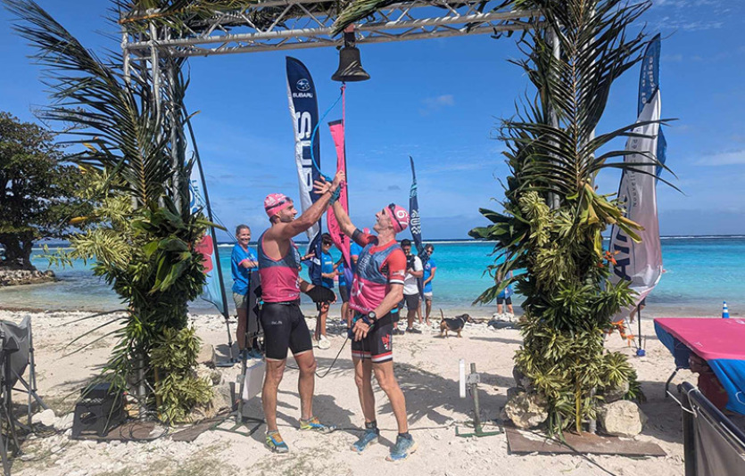 - Waldemar de Laage / Radio1 Tahiti | Crée le 27.08.2024 à 08h19 | Mis à jour le 27.08.2024 à 08h21ImprimerLes Calédoniens Julien Delrieu et Alexandre Bressy sonnent la cloche après leur victoire, dimanche, sur la Tauati swimrun à Moorea. Photo Charlie Réné / Radio 1 TahitiLa quatrième édition a vu s’élancer 350 athlètes depuis le Tauati Ferry ce dimanche. Entre lagon, baies et montagne, et face à beaucoup de vent, les Calédoniens Julien Delrieu et Alexandre Bressy l’ont emporté sur la distance XL (35 km), après plus de 4 heures d’effort. Guénaêlle Rauby et Marianne Bolteau gagnent chez les femmes. Sur la course S (13 km), succès de Kohai Schmitt et Teaonui Philippe, et pour Solène Ruiz et Katell Gallais. Retour sur la course avec notre partenaire Radio 1 Tahiti.