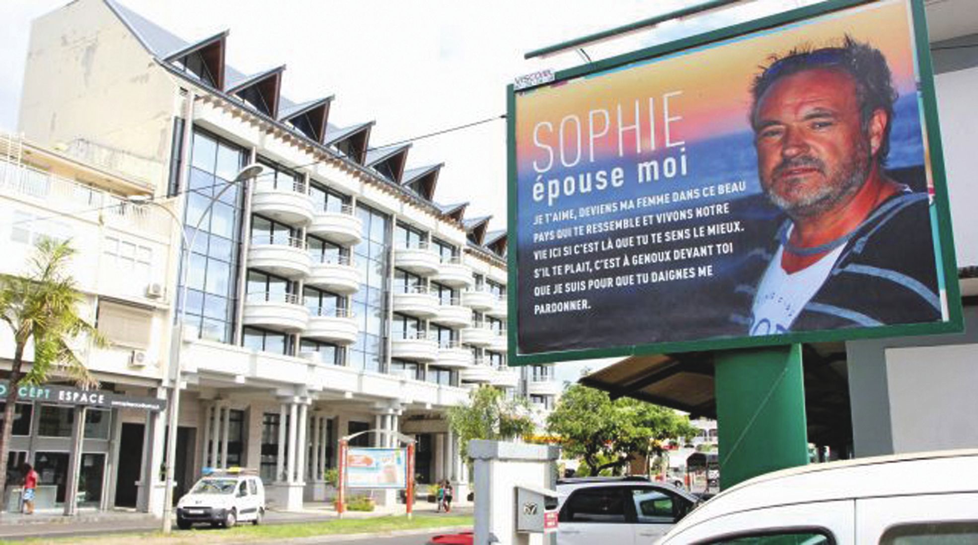 - Polynésie. Certains sont prêts à utiliser tous les moyens pour retrouver l’être aimé. Ces jours-ci, cet homme n’a pas hésité à faire placarder un imposant encart sur l’avenue Prince-Hinoi, à Papeete. Aux côtés de son portrait figure un texte où il s’adresse à « Sophie ». « SIl vous reste 40% de l'article à découvrir.Cet article est réservé aux abonnés.