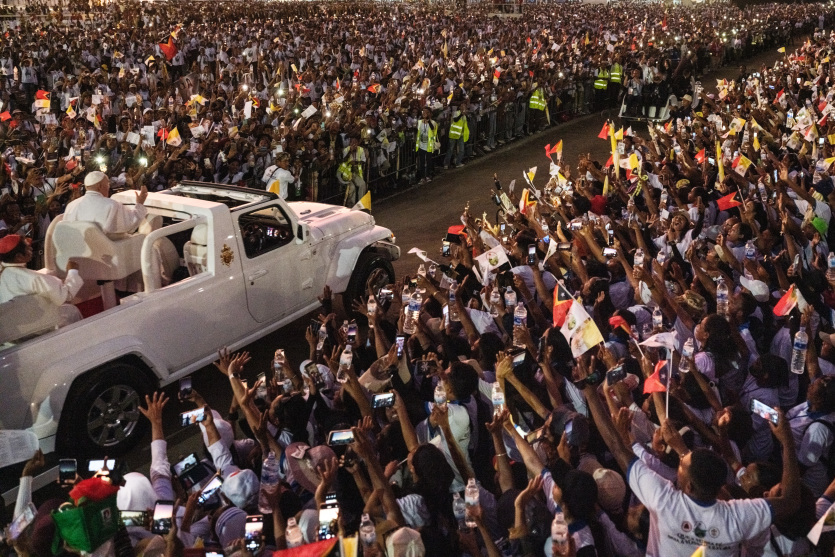 Cette liesse générale témoigne de l’enthousiasme suscité par l’événement dans ce pays à 98 % catholique, où les habitants grimpent sur les toits et les poteaux pour recevoir une bénédiction ou apercevoir l’homme en blanc.