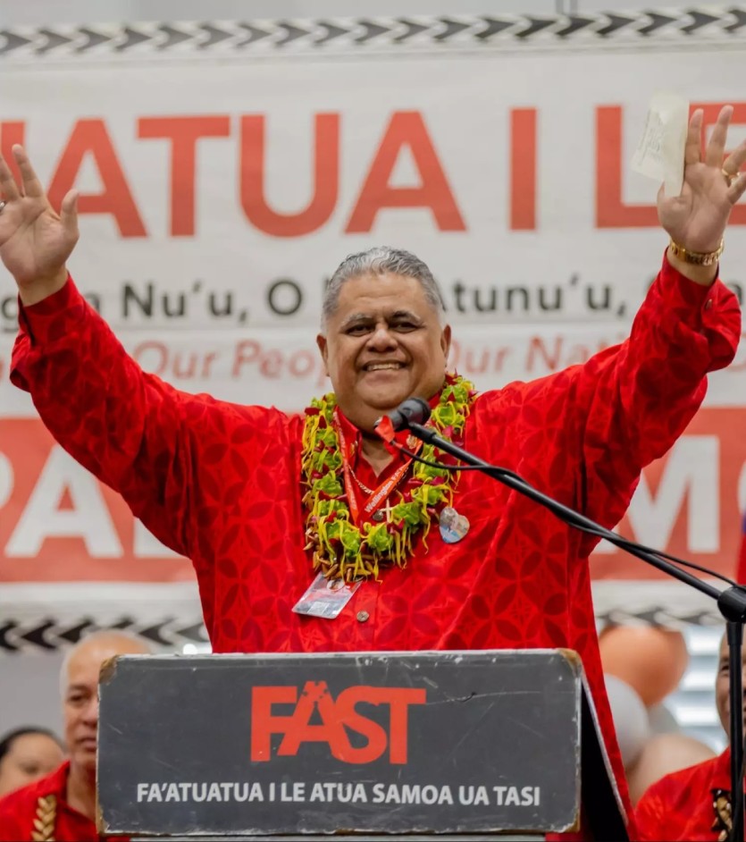 La Première ministre Fiame Naomi Mata’afa et son jeune parti ont remporté à peine trois sièges pour leur première élection. Photo AFP / William WestFille du premier Premier ministre des Samoa, ancienne ministre et vice-première ministre sous l’ère du PPDH, Naomi Fiame Mata’afa avait rejoint le FAST, alors nouveau parti d’opposition, en 2021. À sa tête, elle remporte les législatives la même année après une crise institutionnelle, Sa’ilele Malielegaoi refusant de quitter le pouvoir. Naomi Fiame Mata’afa est devenue la première femme à la tête de cet État insulaire de près de 220 000 habitants, ancienne colonie rattachée à la Nouvelle-Zélande.