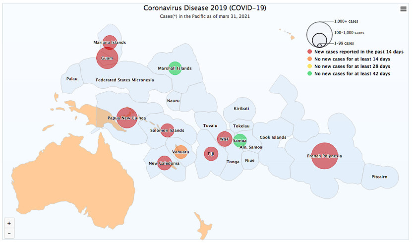 Plus d'un an après le début de la pandémie, onze petits pays et territoires insulaires océaniens (Mariannes du Nord, Fidji, Polynésie française, Guam, Nouvelle-Calédonie, Papouasie-Nouvelle-Guinée, Îles Marshall, Samoa, Îles Salomon, Vanuatu et Wallis-et-Futuna) ont signalé des cas et/ou des décès liés à la Covid-19. La maladie constitue une difficulté majeure pour la région, estime la Communauté du Pacifique (CPS) qui, en qualité de chef de file du Conseil des organisations régionales du Pacifique (CORP) dans le domaine de la santé publique, dit avoir pris toutes les mesures nécessaires pour lutter contre sa propagation.
