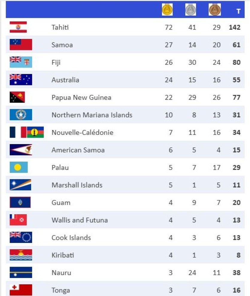 Sur la ligne de départ, ils n’étaient que 30. À l’arrivée, ils raflent tout de même 34 médailles. Une performance plus qu’honorable pour les Cagous qui se hissent à la septième position du classement (sur 23 territoires participants), bien loin de leurs homologues de Tahiti qui remportent haut la main la compétition avec pas moins de 142 médailles dont plus de la moitié (72) en or.