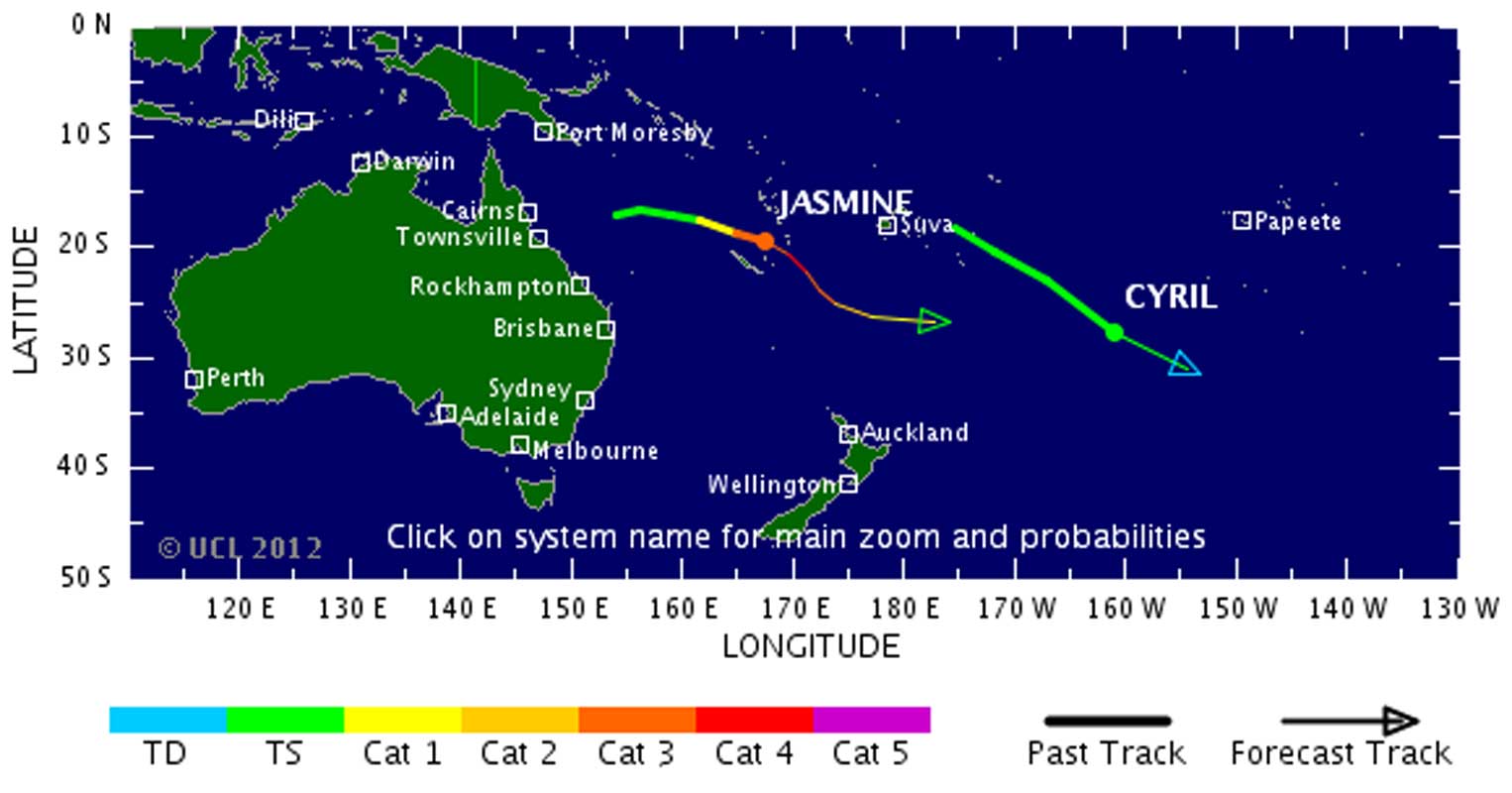 - Alerte rouge, sur Tanna, dans la province de Tafea.Les vents cycloniques du cyclone Jasmine de secteur nord-nord ouest a balayé les îles, Erromango, Tanna, Aniwa, Anatom et Futuna.?Ces îles ont reçu des pluies intenses qui ont entraîné des inondations et des glissements de terrain. Les houles étaient fortes, et ont menacé les régions basses qui en certains endroits ont été évacuées par les populations qui ont rallié les endroits hors d’atteinte de la mer.Il vous reste 88% de l'article à découvrir.Cet article est réservé aux abonnés.