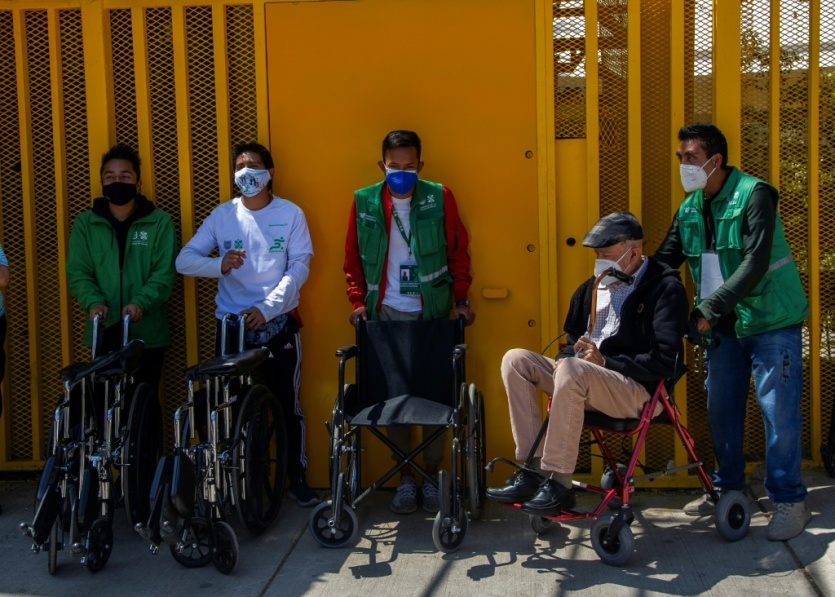 Arrivée d'une vieille femme dans un centre de vaccination contre le Covid-19 à Coyoacan, Mexico City, le 24 mars 2021 CLAUDIO CRUZ [AFP]MERCI DE VOUS IDENTIFIER