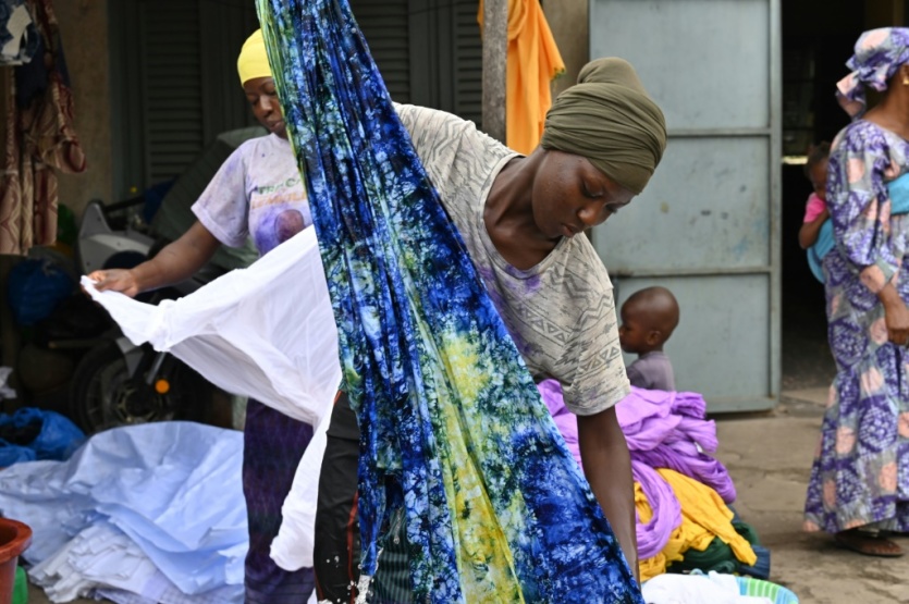 Des femmes teignent des tissus de coton pour le couturier ivoiro-burkinabè Pathé'O à Abidjan, le 31 mai 2021 Issouf SANOGO [AFP]