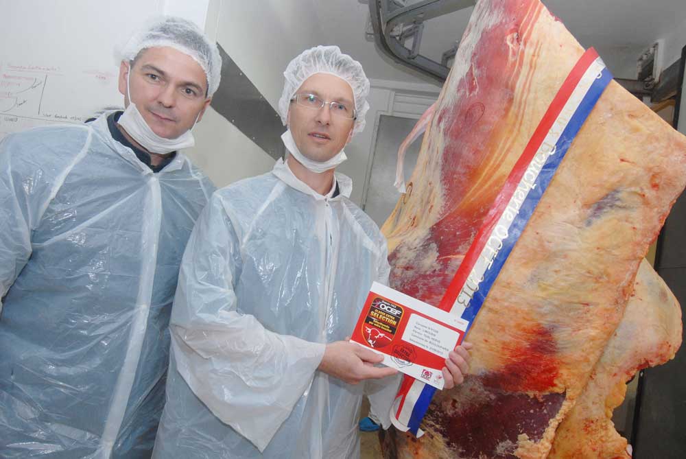 - Elevage. Vente aux enchères à l'Ocef des bœufs primés à la Foire de Bourail8 heures hier matin au siège de l'Ocef, à Ducos. La plupart des bouchers de Nouméa sont là, à l'affût d'une vente aux enchères très particulière. Celle des carcasses de bœuf primées à la Foire de Bourail. Autrement dit de la très très belle bête, dont le 1er prix a atteint un prix record de 1 300 F au kilo.«De la bête de concours, sourit Jean-Pierre Vilas, directeur général de l'Ocef. Ce sont là des animaux d'une qualité particulièrement exceptionnelle grâce au travail des éleveurs. » Pour être classée en viande extra, la carcasse doit peser au minimum 320 kg. Les pièIl vous reste 96% de l'article à découvrir.Cet article est réservé aux abonnés.